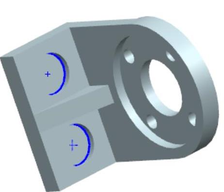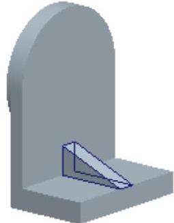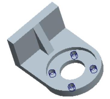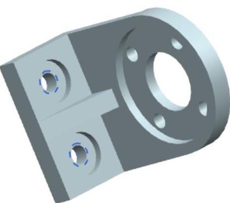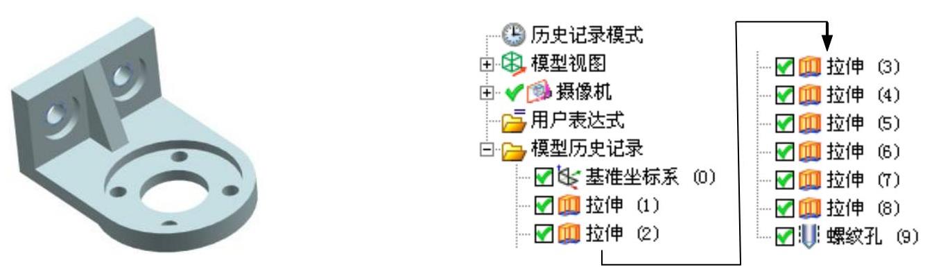本实例主要讲述固定座的设计过程,运用了拉伸、筋肋、孔等命令。其中需要注意的是筋肋特征的创建过程及其技巧。固定座零件模型及模型树如图2.2.1所示。