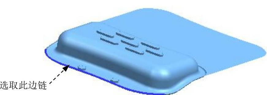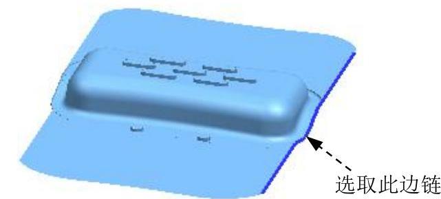 命令,系统弹出“拉伸”对话框;选取图1.38所示的片体边链为拉伸对象;在