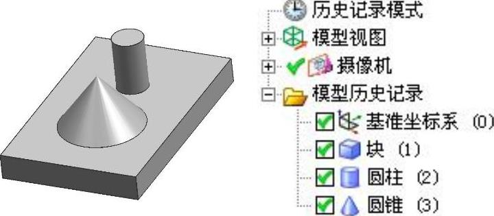 本节以图 3.4.8 所示的实体模型及模型树的创建过程为例,来说明在基本体素特征上添加其他特征的一般过程。