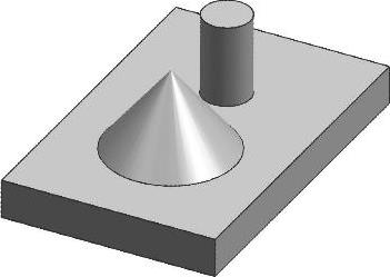 ( 6 )对圆锥体和前面已求和的实体进行布尔运算。在 下拉列表中选择 选项,采用系统默认的求和对象。单击 按钮,完成圆锥体的创建。