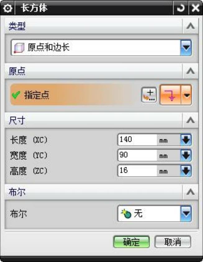 ( 3 )定义长方体参数。在 文本框中输入数值 140 ,在 文本框中输入数值 90 ,在 文本框中输入数值 16 。