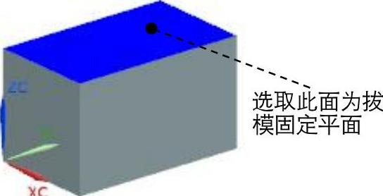 ◆ (固定面):单击该按钮,允许通过选择的平面、基准平面或与拔模方向垂直的平面所通过的一点来选择该面。此选择步骤仅可用于从固定平面拔模和拔模到分型边缘这两种拔模类型。