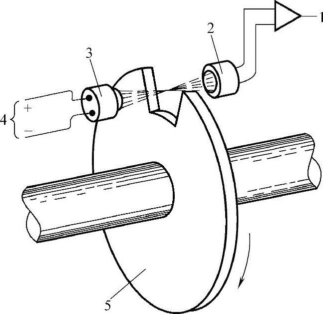 1—输出信号 2—光敏晶体管 3—发光二极管 4—电源 5—转盘
