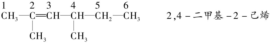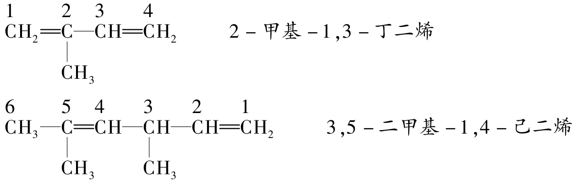 (3)用阿拉伯数字标明双键或三键的位置(只需标明双键或三键碳原子编号较小的数字)。用“二”、“三”等表示双键或三键的个数。