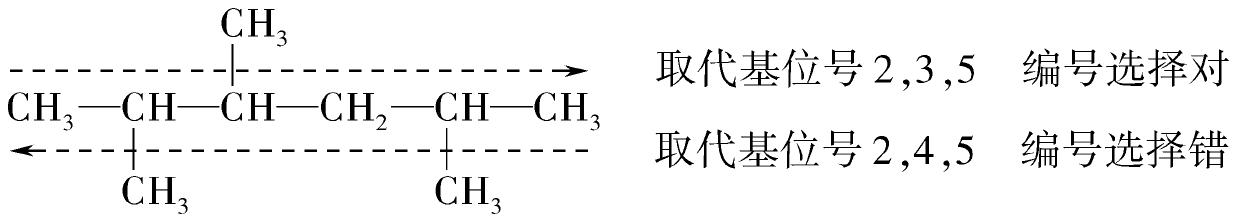 b.有多种支链时,应使支链位置号数之和最小。例如: