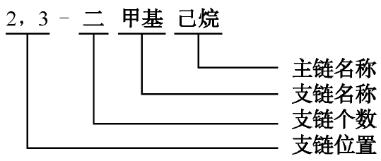 以2,3-二甲基己烷为例,对一般烷烃的命名可如图1-1-2所示。