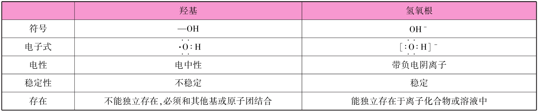1.羟基与氢氧根的对比如表1-1-2所示。