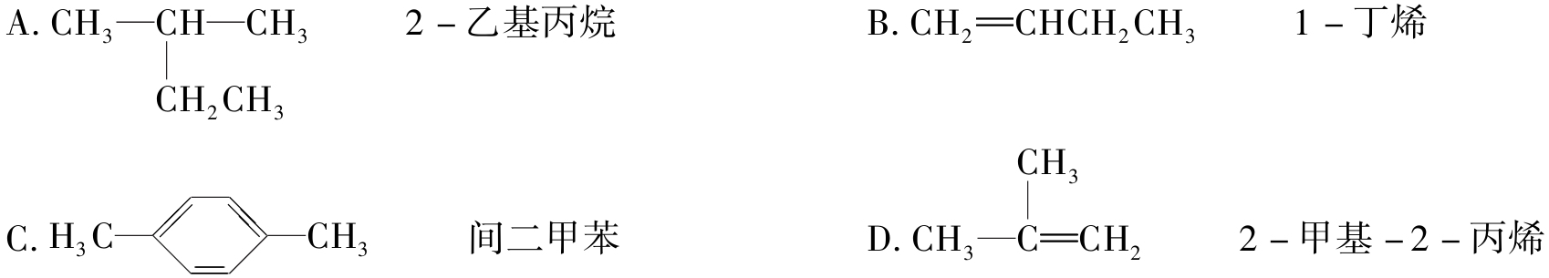 B.3-乙基-1-丁烯:H 2 C==CHCH(CH 3 )CH 2 CH 3