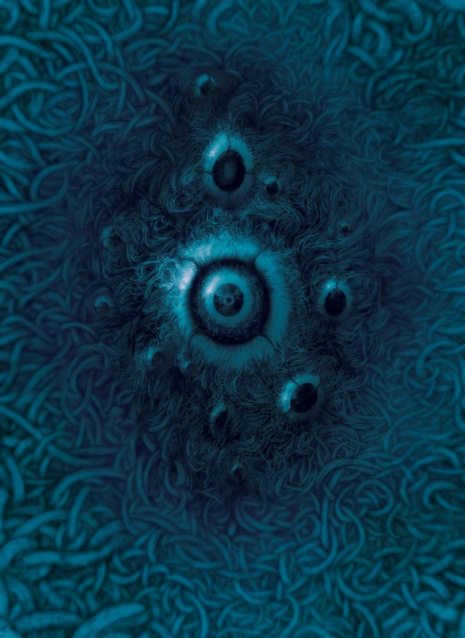 阿撒托斯是克苏鲁神话神系中的主神,洛夫克拉夫特眼中冰冷机械的宇宙本质的象征。阿撒托斯的王庭位于无限混沌的核心,不在普通的宇宙之内,一道彩色的屏障将王庭与寻常时空分隔开来。它通常是没有固定形态的混沌聚合,也有人说它是无数星辰的集合,但在极少数受到召唤的场合,它亦会呈现其他形象。大群盲目痴愚的无形从神环绕着它的王座,永无休止地用可憎的长笛吹出单调的笛音,用拙劣的手鼓敲出令人疯狂的回响。阿撒托斯几乎不会离开自己的王座,一直在这无法构想的伴乐中翻滚噬咬。