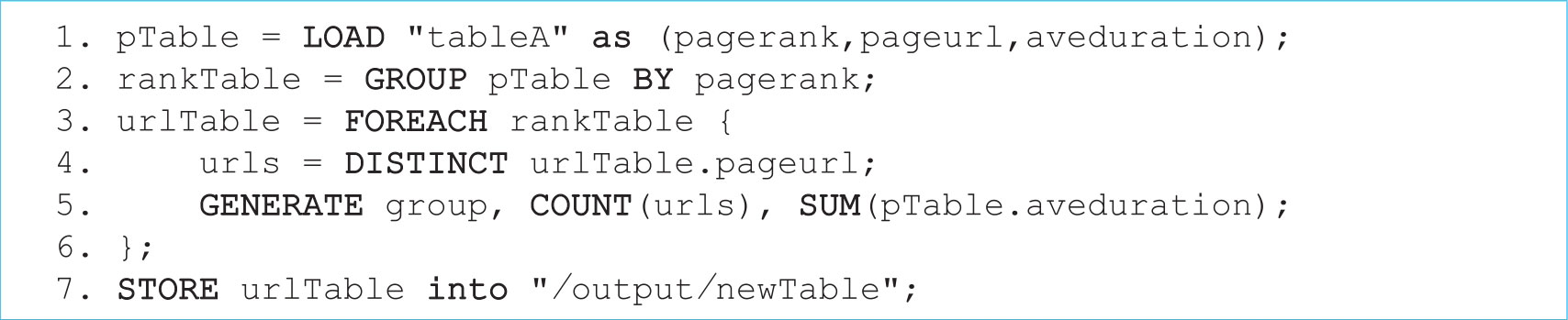 图1.6 使用类似SQL的Apache Pig脚本自动转化生成Hadoop MapReduce代码