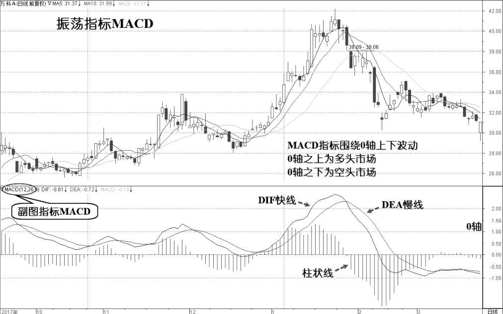 (注:关于“振荡”与“震荡”的使用,通常对指标用“振荡”,对行情用“震荡”。Oscillators原意为振荡器,振荡指标意在描述指标线围绕0轴呈非对称周期性的振荡运动;震荡行情是指横盘中的无序波动,它与趋势行情相对应。)