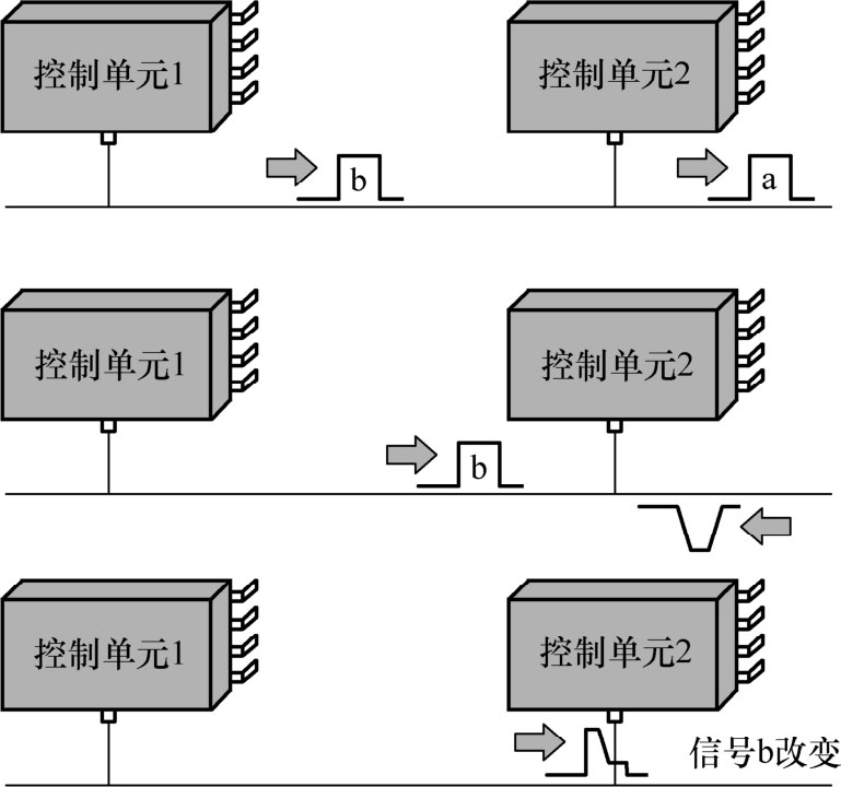 图1-42 3个电控单元信息发送过程