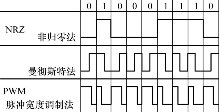 总线上的比特编码可以通过非归零法(NRZ)、曼彻斯特法和脉冲宽度调制法(PWM)实现。这些方法的区别在于表示一个比特所需要的时段(时间窗)数量不同。