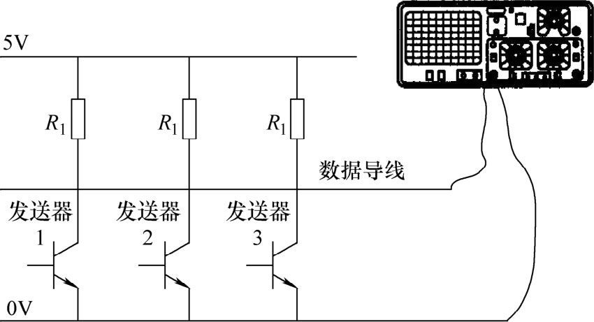 图1-35 通过一个电阻和一个晶体管在数据导线上生成信号