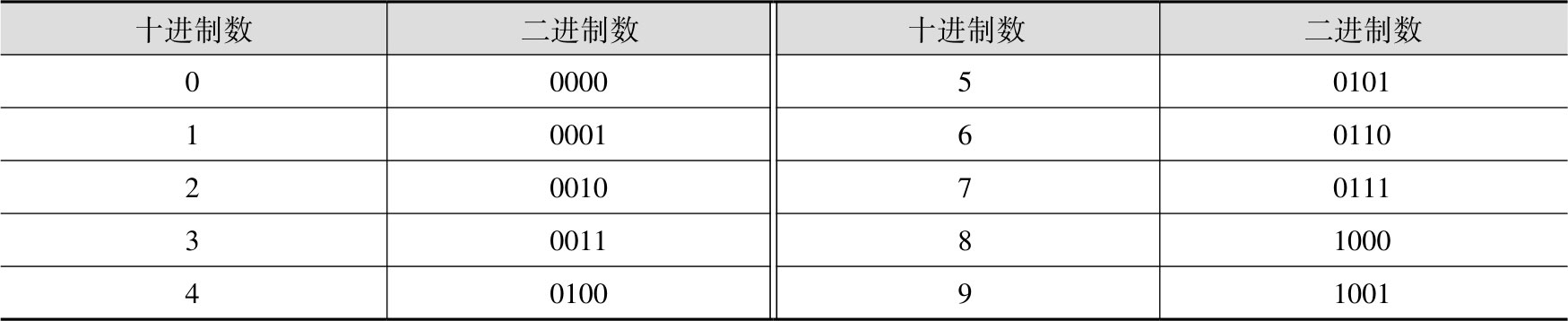 表1-15 以二进制数方式为十进制数编码