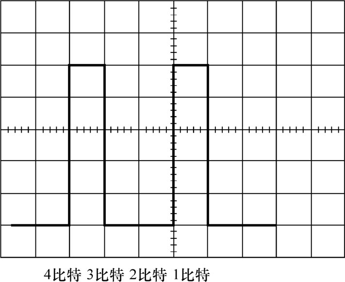 如果总线导线上的电压电平以相同的时钟节拍切换,则可以在相同时段内表示二进制代码数据。这些代码称为比特。利用二进制字符0和1可以为十进制数编码。表1-15为十进制0~9的编码,图1-38为十进制数9在总线上的表示。