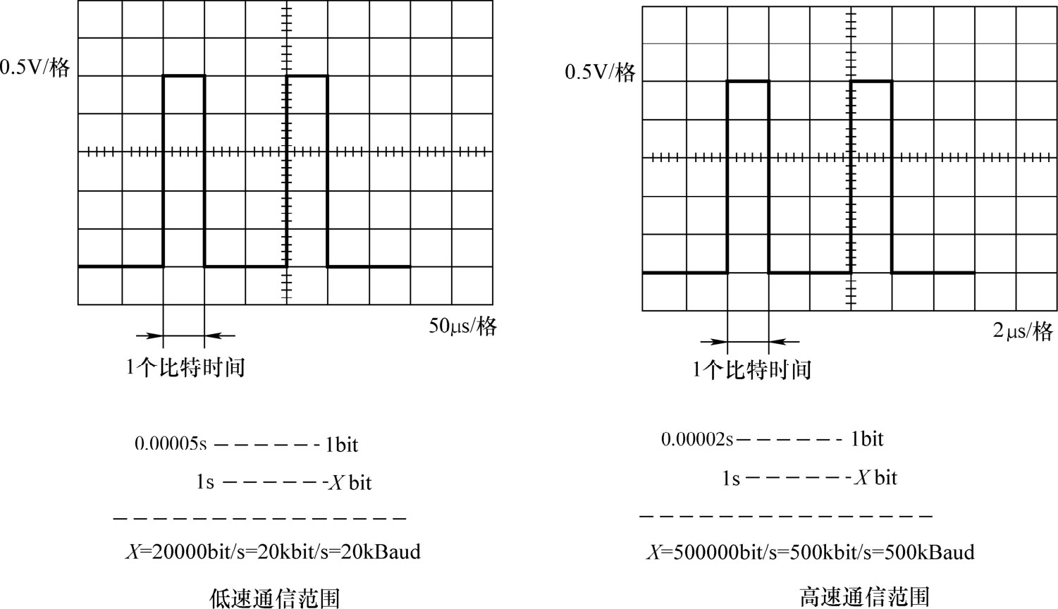 低速通信范围:比特率低于125kbit/s。高速通信范围:比特率高于125kbit/s。