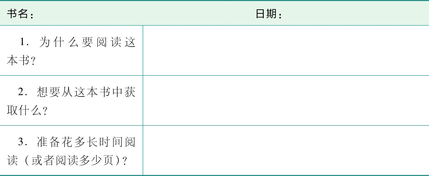 使用规则:在每次阅读一本书(一篇文章)之前,通过填写表2-1的问题来确定自己的阅读目标。