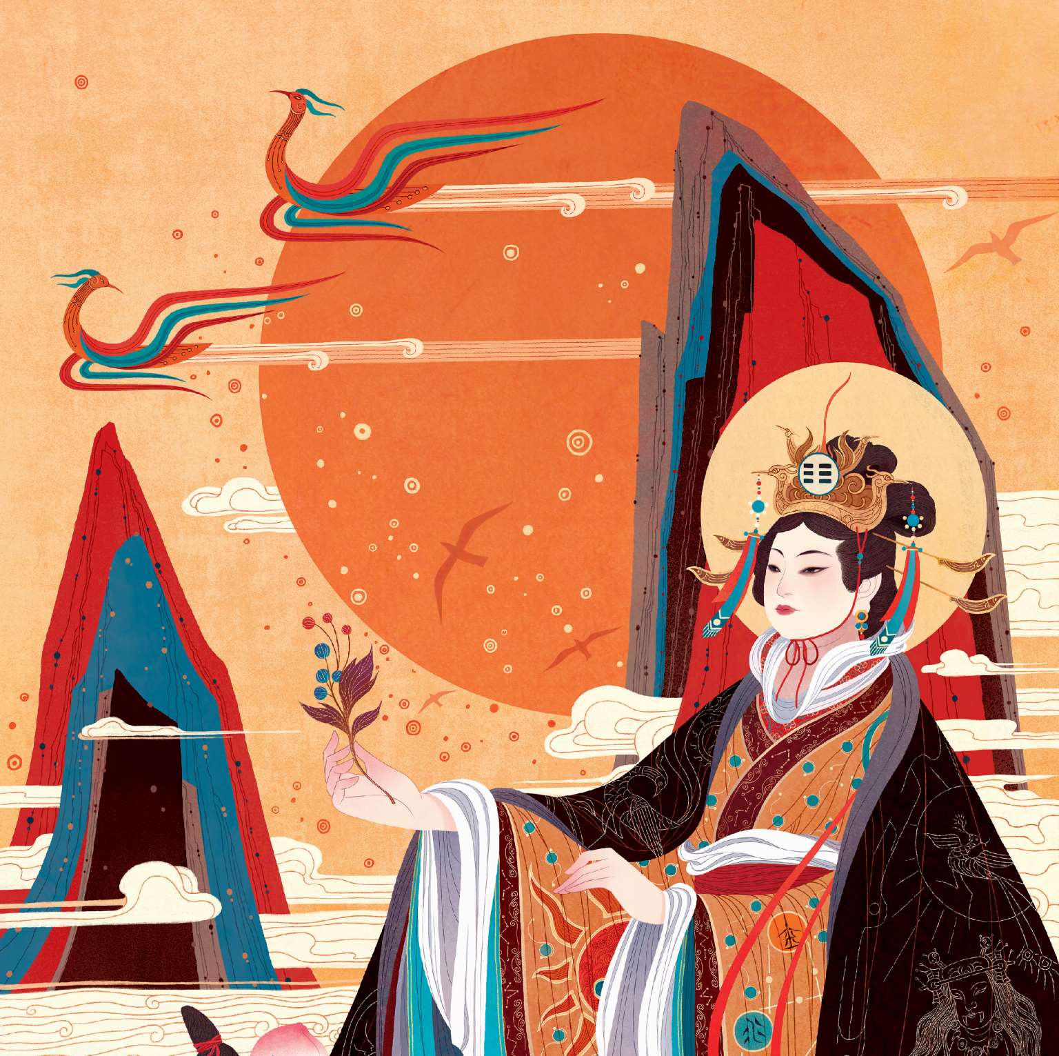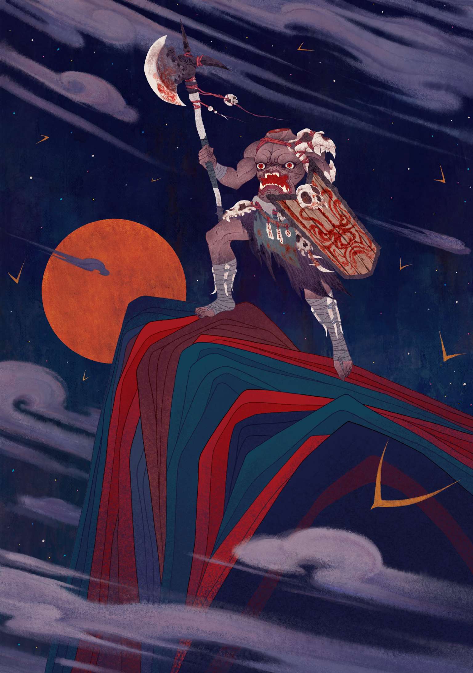 刑天(或作“形天”)与天帝争夺“权威”的地位。天帝砍断他的头,把他埋在“常羊”之山(“天”是巅顶,“刑天”就是砍去头)。
