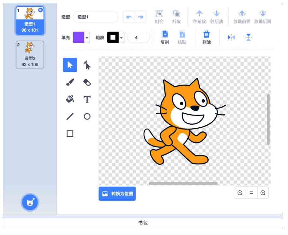 选择造型可以看到角色的造型列表和画板,在这里我们可以编辑角色的造型。