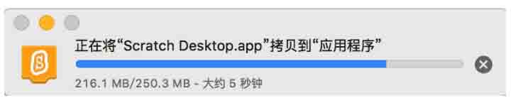 05 等待 Scratch Desktop.app 拷贝到应用程序后,Scratch 3.0就安装完成了。