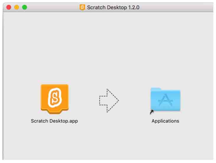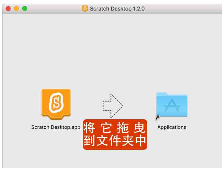 04 将 Scratch Desktop.app 文件拖曳到 Applications 文件夹中。