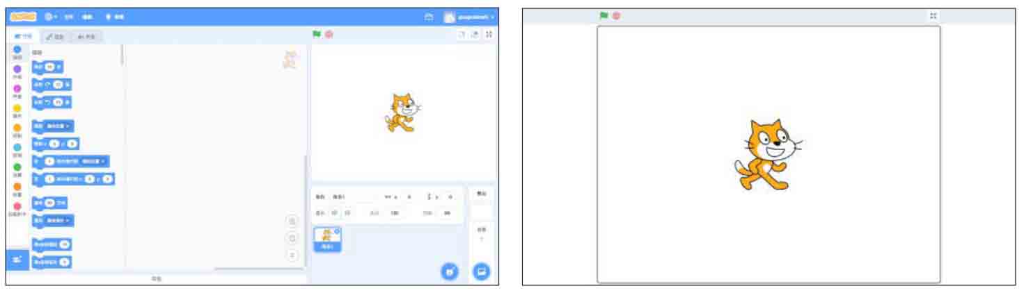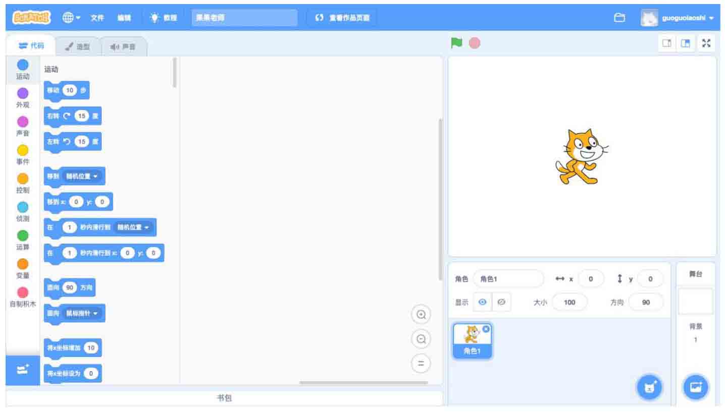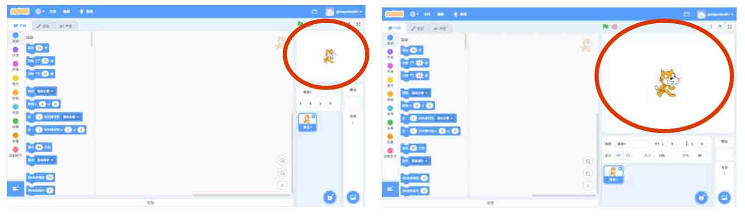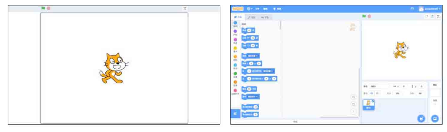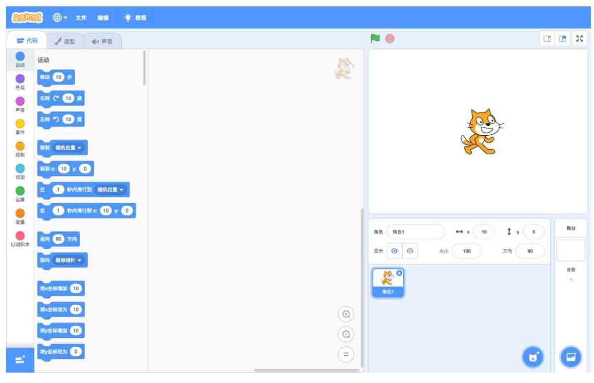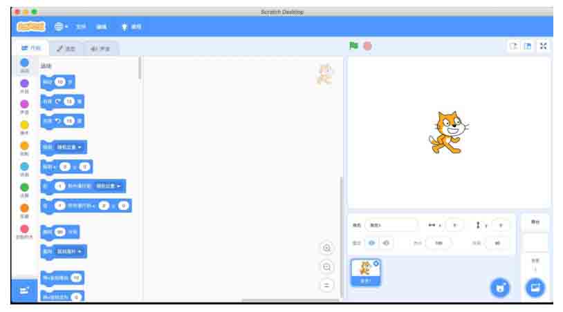 相比Scratch 2.0的界面变化还是非常大的,很多版块的位置发生了调整,一些模块的展现形式也发生了变化。