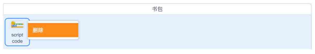 06 如果你想删除书包里的代码块 , 只需要对准要删除的代码块右击 , 选择 “ 删除 ” 选项 :