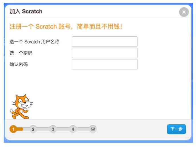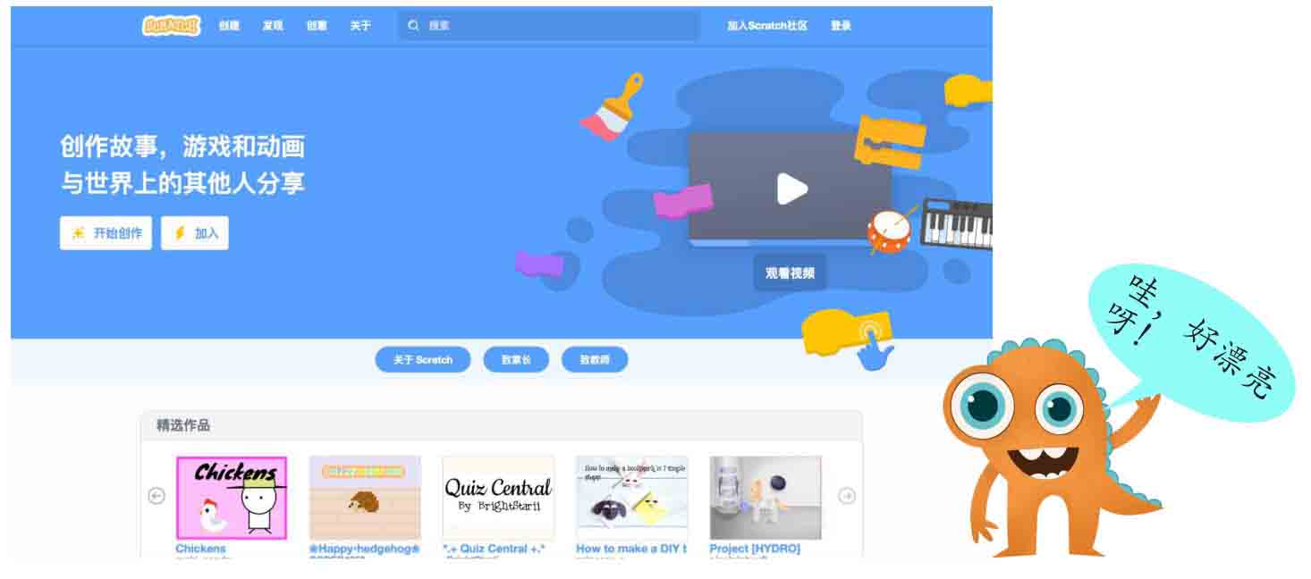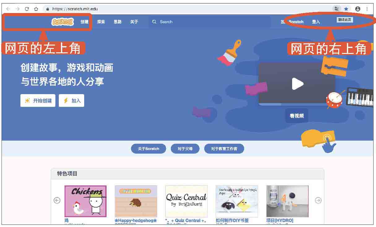 02 在开始创作之前最好注册一个属于自己的账号,这样你就可以进入Scratch社区,保存并分享你所创作的作品了。单击 加入 ,注册属于自己的账号吧。