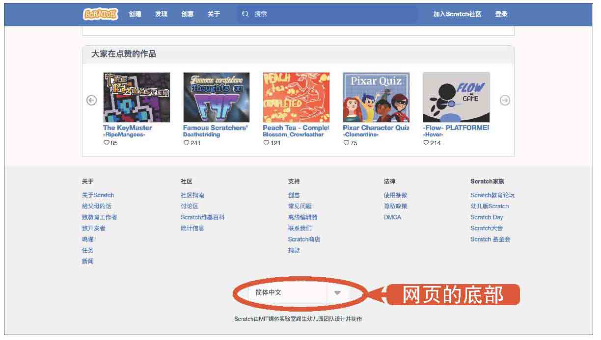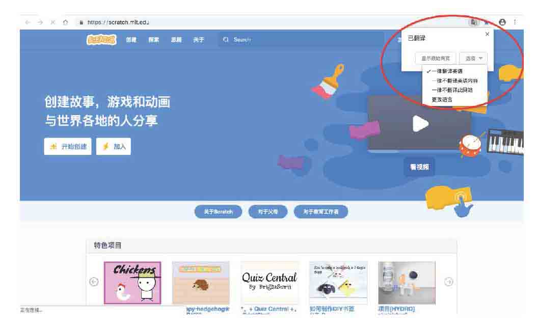 01 确保电脑是联网状态,打开浏览器,在地址栏中输入 https://scratch.mit.edu/ ,按回车键,进入Scratch官网。