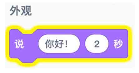 在积木区单击积木块,运行的时候积木块周围会有一道黄色的光芒,就像这样: