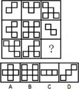 【例1】九宫格给出的八个图存在一定的规律性,请从所给的四个备选项中,选择最合理的一个填在问号处,使之保持这一规律性。
