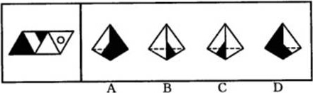 【例2】左侧给出的图形是纸盒的外表面,右侧的四个备选项中哪一项能由它折叠而成?