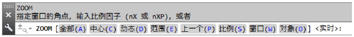 在命令行输入命令ZOOM并按Enter键后,命令行的提示如图1.8.2所示。下面分别介绍该提示中的各选项。