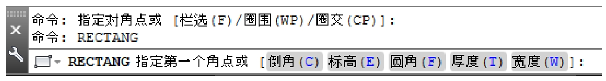 (2)在命令行中输入命令RECTANG后按Enter键。
