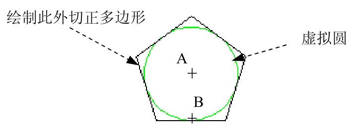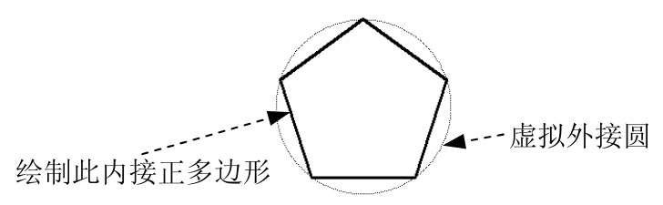 在绘制内接正多边形时,需要指定其外接圆的半径,正多边形的所有顶点都在此虚拟外接圆的圆周上(图2.2.6)。下面说明其绘制的一般操作步骤。