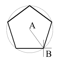 ,选取绘图区中的某一点——B点,以确定内切圆的半径(也可以直接输入内切圆的半径值),此时系统便绘制出图2.2.8所示的外切正五边形(AB连线的长度就是正多边形的内切圆的半径)。