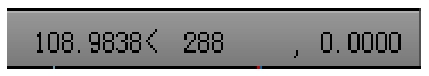 命令,在状态栏中将显示光标相对极坐标。当光标在绘图区处于选取点的状态时,状态栏上将显示当前光标位置相对于前一个点的距离和角度(相对极坐标)。当离开选取点状态时,系统将自动恢复到“绝对”模式。下面是显示光标的相对极坐标的一个例子。