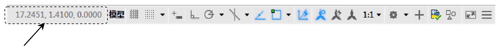 的形式,表示已打开此命令,此时在状态栏中就会出现坐标显示区。