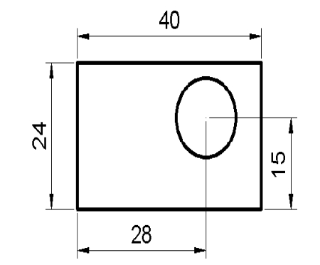 下面以图3.1.9为例来说明新建用户坐标系的意义和操作过程。本例要求在矩形内绘制一个圆心定位准确的圆,圆心位置与两条边的距离值为28和15。如果不建立合适的用户坐标系,该圆的圆心将不容易确定。而如果在矩形一角的A点处创建一个用户坐标系,圆心点便很容易确定(图3.1.10b)。下面说明其创建的一般操作步骤。