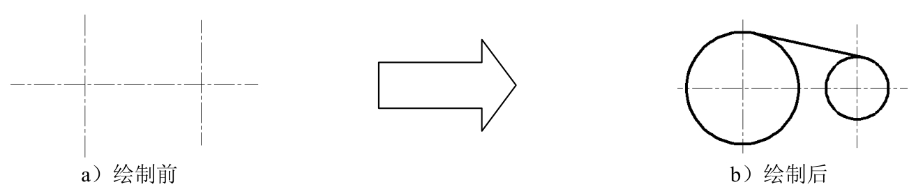 本例要求在图3.5.4a所示的图形中,在中心线的两个交点位置绘制两个圆,然后绘制一条直线与这两个圆相切,如图3.5.4b所示。