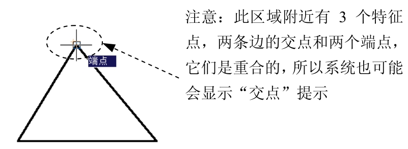 的提示下,将鼠标光标移至三角形的顶点附近,当鼠标光标附近出现“端点”提示时单击,如图3.5.2所示。