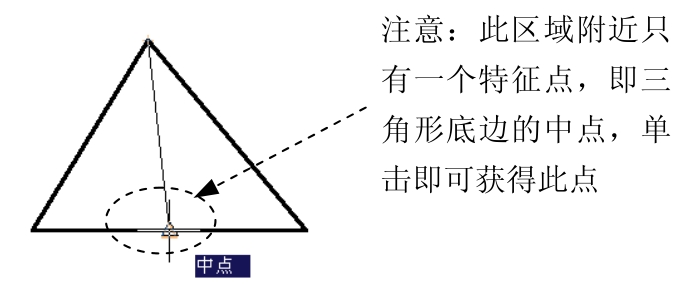 的提示下,将鼠标光标移至三角形底边的中点附近,当鼠标光标附近出现“中点”提示时单击,如图3.5.3所示。