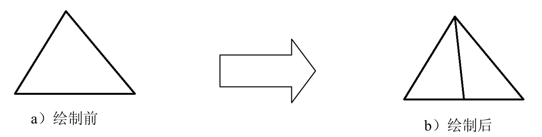 本例要求在图3.5.1a所示的图形中,通过三角形的顶点和底边的中点绘制一条直线,如图3.5.1b所示。