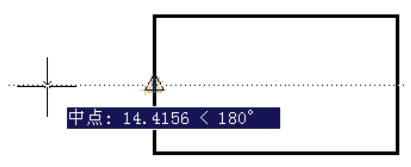 命令;将鼠标光标移至图3.5.12所示的矩形竖直边线的中点附近,当出现“中点”提示时(图3.5.12),慢慢地向左水平移动鼠标光标,此时即显示一条对象追踪虚线(此时称为对象追踪状态),并同时显示当前位置点与捕捉点之间的相对关系