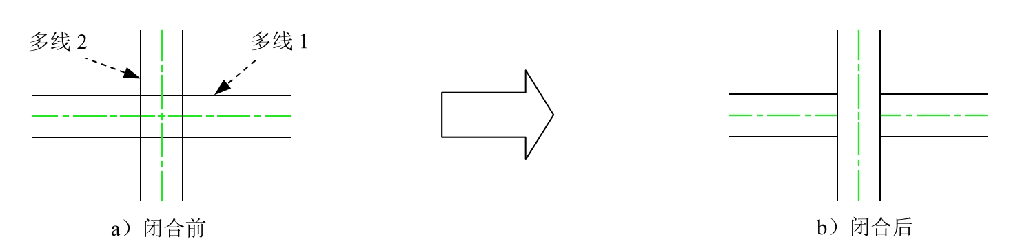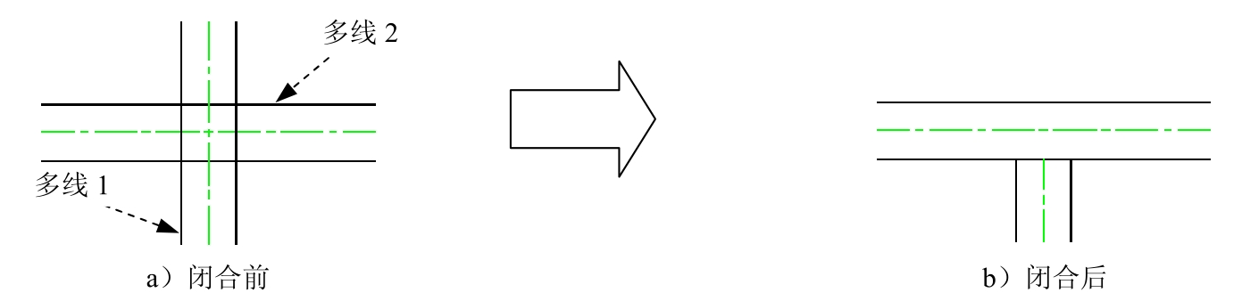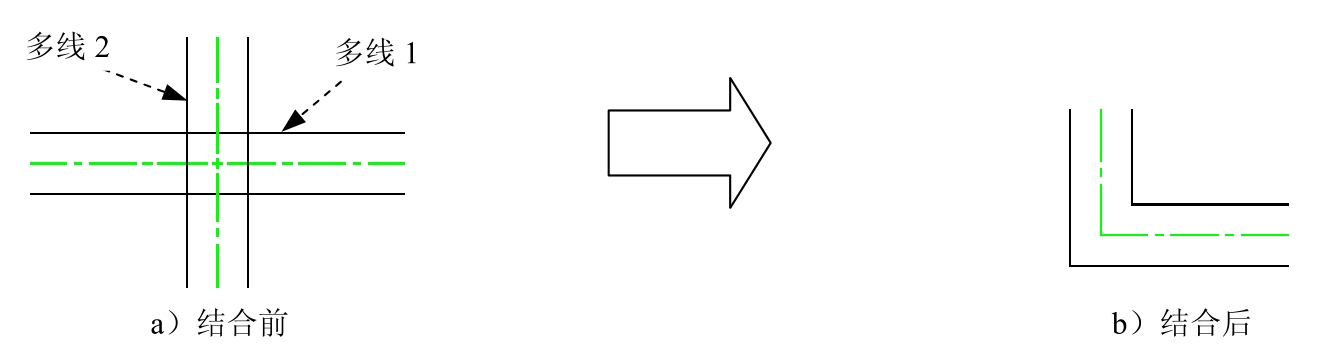 注意: 在选取要编辑的多线对象时,光标选取的一侧为结合后保留的部分。