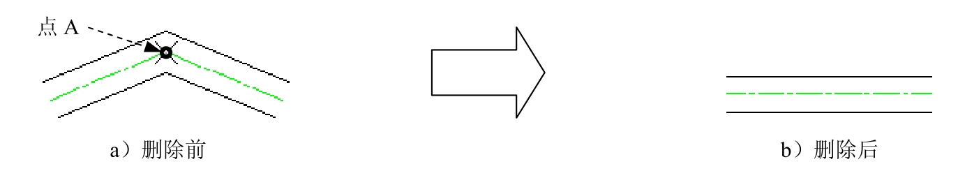 在选择“删除顶点”方式后单击图4.2.14a所示的多线上的A点,然后按Enter键结束命令,结果如图4.2.14b所示。