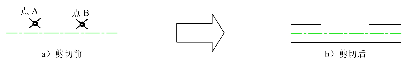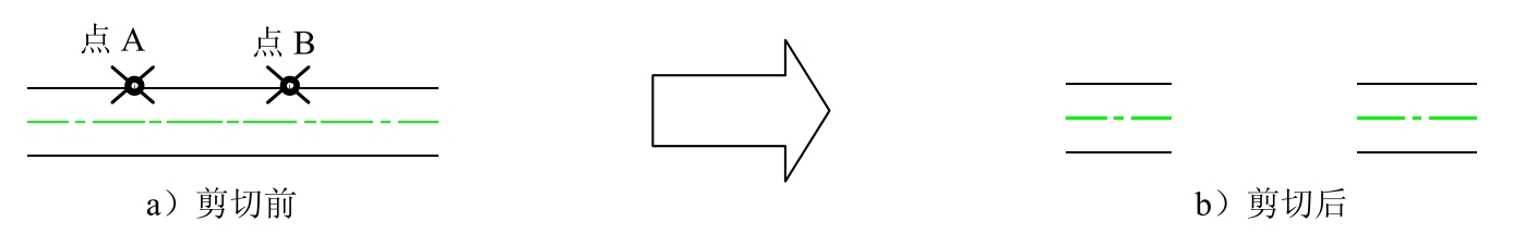 全部剪切就是删除多线上两点之间的部分。在选择“全部剪切”方式后单击图4.2.16a所示的多线上的点A和点B,此时点A和点B之间的部分被移除,如图4.2.16b所示。