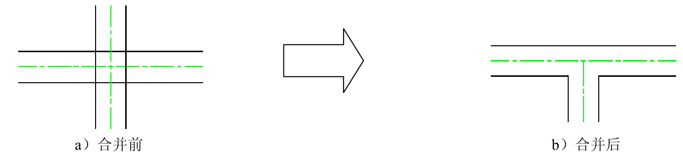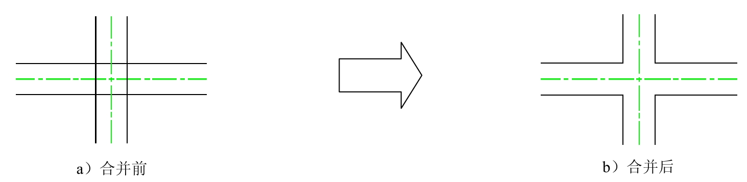 注意: 在选取要编辑的多线对象时,先选取的为被修剪的多线;图4.2.7所示为“十字打开”的效果,图4.2.8所示为“十字合并”的效果,其操作步骤参照“十字闭合”即可。