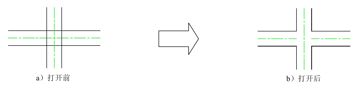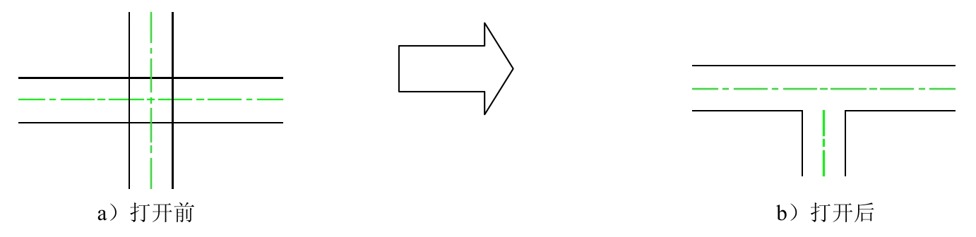 注意: 在选取要编辑的多线对象时,先选取的为被修剪的多线。图4.2.10所示为“T形打开”的效果,图4.2.11所示为“T形合并”的效果,其操作步骤参照“T形闭合”即可。